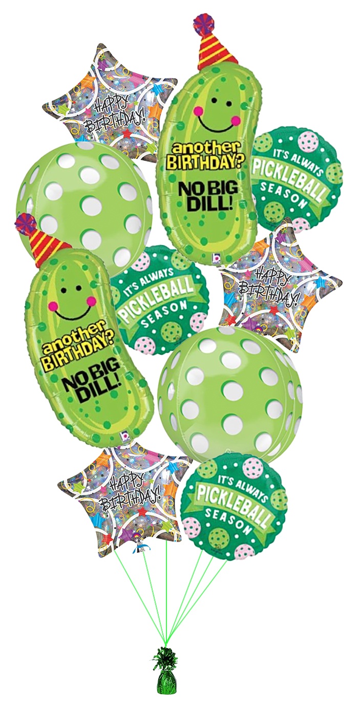 Score BIG this birthday with our amazing Pickleball Birthday balloon bouquet! Stands 6 to 7 feet tall, and floats for multiple days when used indoors.