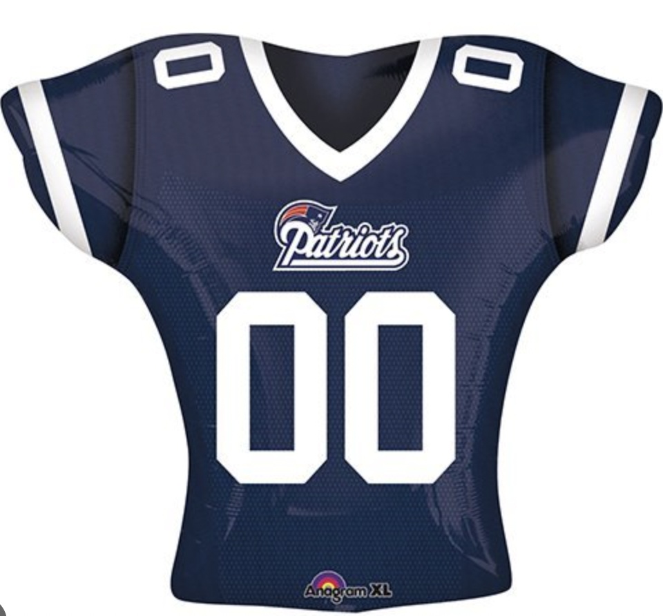 Get your house ready for game day with a Patriots Jersey Balloon. This football jersey balloon features the team name on the front and official logo on the back — perfect for showing support for your favorite team! Use alone or mix and match with latex balloons to create a balloon bouquet for your tailgate party or football party.
